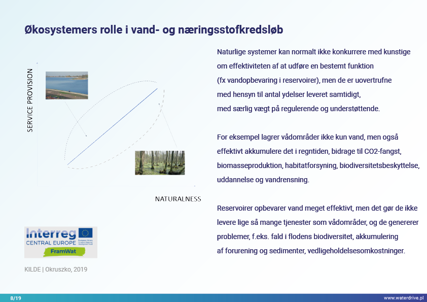 Under det stigende pres og uforudsigeligheden af synergistiske klima- og antropopressurpåvirkninger har tekniske og teknologiske løsninger begrænset potentiale til at understøtte naturen og økonomien på lang sigt. De nye løsninger skal være robuste, tilpasningsdygtige, multifunktionelle og multifunktionelle, med lavt omkostnings/effektivitetsforhold. Velplanlagt landskab, mosaik, med forskellige levesteder for fauna og flora, med respekt for vådområder og vandområder, kan tjene en masse tjenester til lave eller ingen omkostninger for samfundet. Det er vigtigt, at det ikke genererer nogen negative virkninger, mens det øger antallet af forventede og uventede fordele på lang sigt.