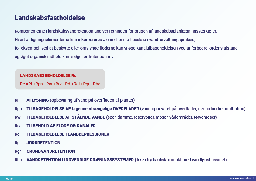 Inden for vandforvaltning beskæftiger vi os kun med tre, men snarere kritiske udfordringer – der er for lidt, for meget vand, eller det er forurenet. Disse problemer hænger normalt sammen, og løsningen af det ene kan i sidste ende uddybe det andet (såsom beskyttelse mod oversvømmelser i byer baseret på effektiv vandudstrømning, hvad der bidrager til UHI og grundvandsspejlsfald). Manglen eller overskud af vand opstår efterfølgende som følge af sæsonbestemte nedbørsvariationer, problemer med vandfordeling og brugsintensitet. Mangel på vand påvirker jordstrukturen, hvilket gør den mindre permeabel, udløser vinderosion, forringer økosystemer, der fungerer som vandlagre: floder, søer, damme, vådområder, skove og øger koncentrationen af forurening i vandområder. Vandoverløb forårsager vanderosion, udvaskning af forurening, hydraulisk påvirkning af floder. Med stigende klimavariation og mere intens vandforbrug i landbruget vil disse processer højst sandsynligt intensiveres i de næste årtier.