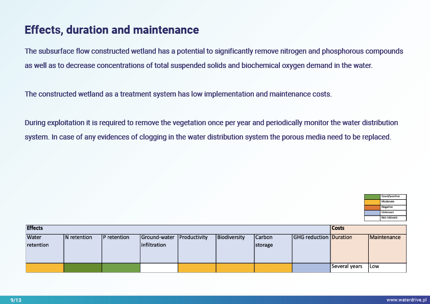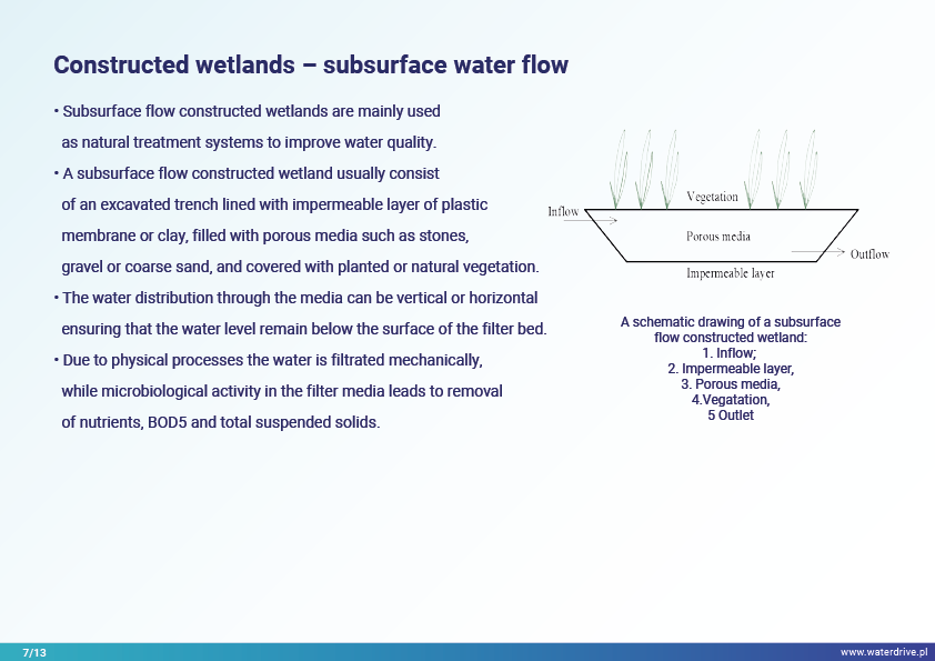 Also the construction of artificial wetlands, both with surface and subsurface flow, is a solution with many environmental benefits. First of all, they have the ability to reduce pollution, increase water retention and create new habitats, thus enhancing biodiversity.