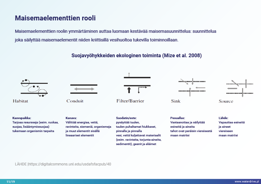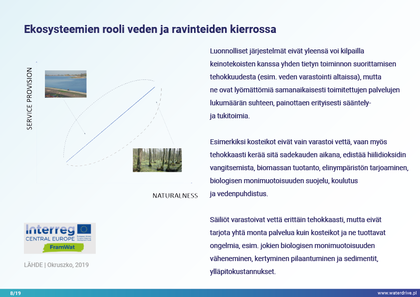Synergististen ilmasto- ja antropopainevaikutusten lisääntyvien paineiden ja arvaamattomuuden alla teknisillä ja teknisillä ratkaisuilla on rajalliset mahdollisuudet tukea luontoa ja taloutta pitkällä aikavälillä. Uusien ratkaisujen tulee olla joustavia, mukautuvia, monitoimisia ja monikäyttöisiä, ja niiden kustannus/tehokkuussuhde on alhainen. Hyvin suunniteltu maisema, mosaiikki, jossa on erilaisia eläimistön ja kasviston elinympäristöjä, kosteikkoja ja vesistöjä kunnioittaen, voi palvella monia palveluita alhaisin tai ilman kustannuksia yhteiskunnalle. Tärkeää on, että se ei aiheuta haitallisia vaikutuksia, mutta lisää odotettujen ja odottamattomien hyötyjen määrää pitkällä aikavälillä.
