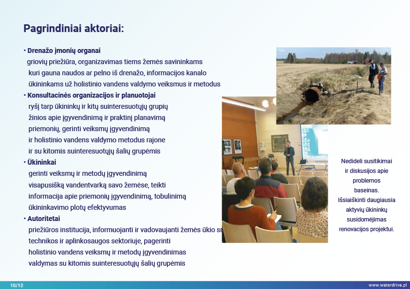Pristatome patirtį įgyvendinant holistinį požiūrį į atkuriamų plotų atkūrimą, orientuotą į žemės ūkio gamybos plėtrą ir aplinkos apsaugą, kaip galimai daugiamatę. Šis metodas apima darbą su ūkininkais, drenažo įmonėmis, vietos valdžios institucijomis, patariamomis institucijomis ir ekspertų komanda.