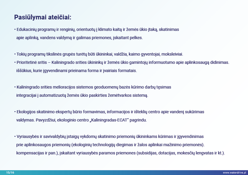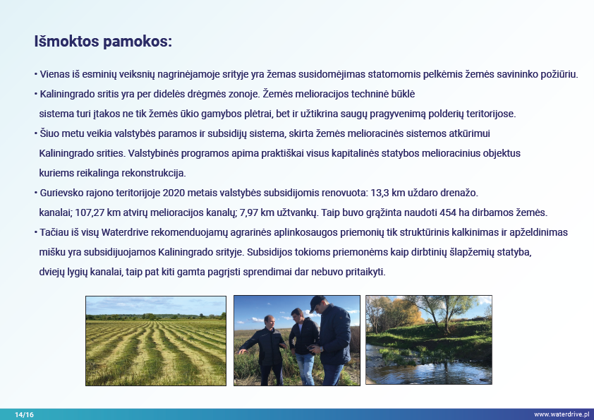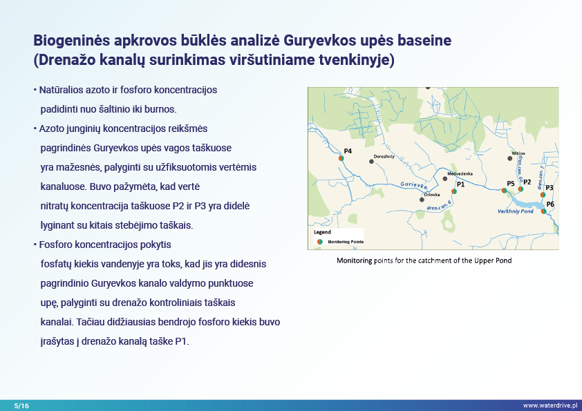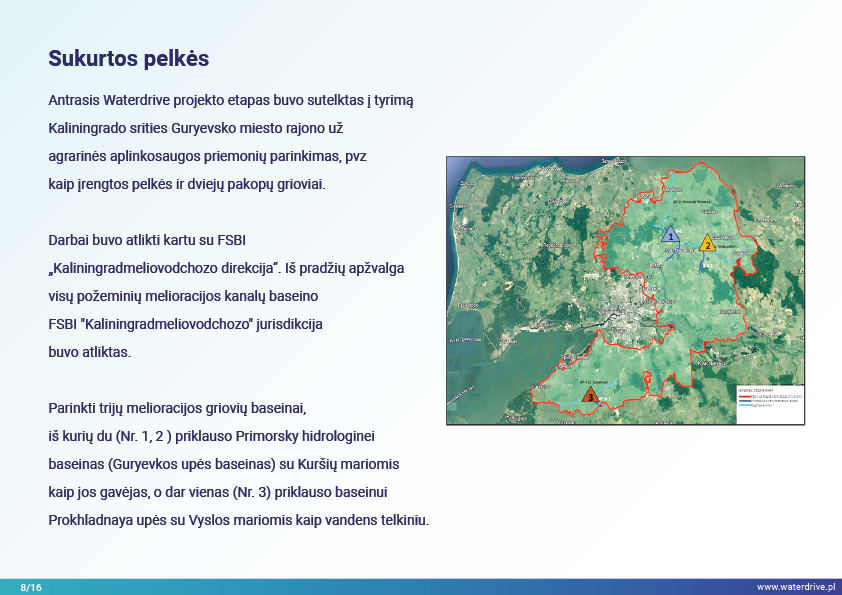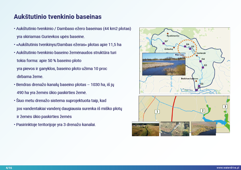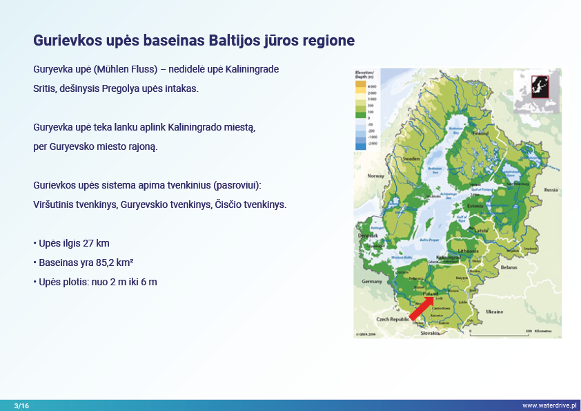 Guryevka upė (Mühlen Fluss) – nedidelė upė Kaliningrado srityje, kurios pagrindiniai taršos šaltiniai yra žmonių gyvenvietės, pramonės įmonės ir žemės ūkis. Vykdant „Waterdrive“ projektą buvo atliktas vandens kokybės monitoringas, kuris parodė, kad azoto ir fosforo koncentracija didėja upei tekant nuo šaltinio iki žiočių. Pristatyti dirbtinių pelkių įrengimo galimybių studijos rezultatai bei vykdoma veikla, susijusi su melioracijos sistemos atkūrimu. Buvo surengta daugybė konferencijų, susitikimų ir „apvalių stalų“, skirtų informuoti apie šiuolaikines agrarinės aplinkosaugos priemones.