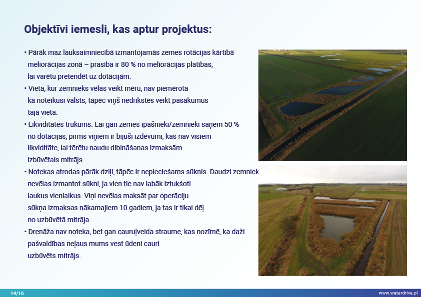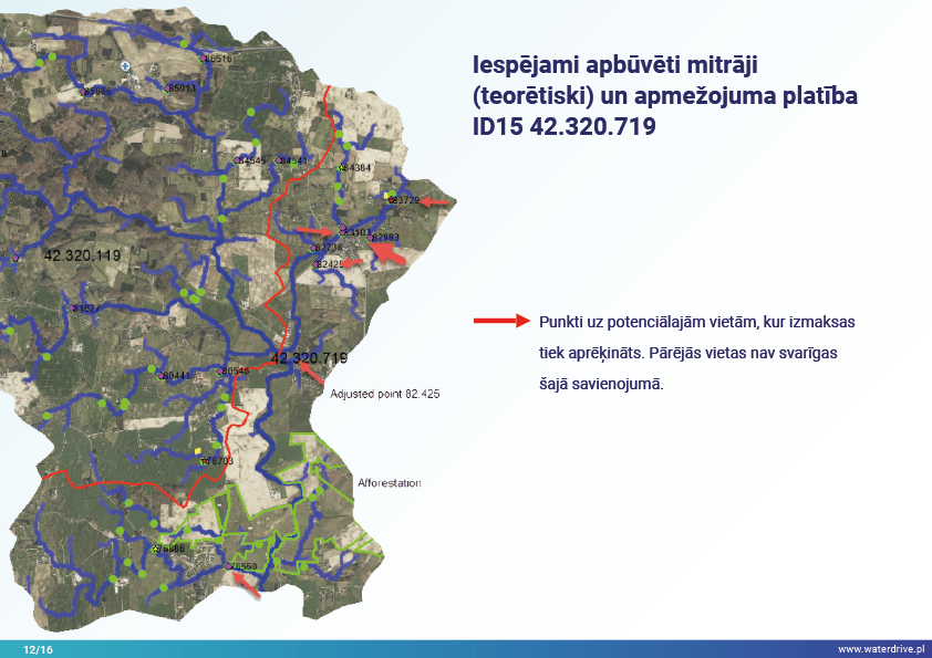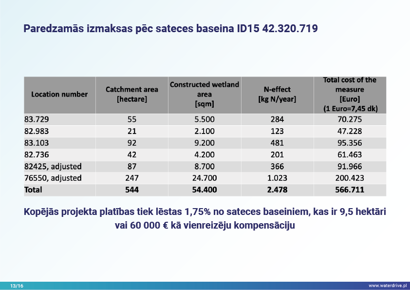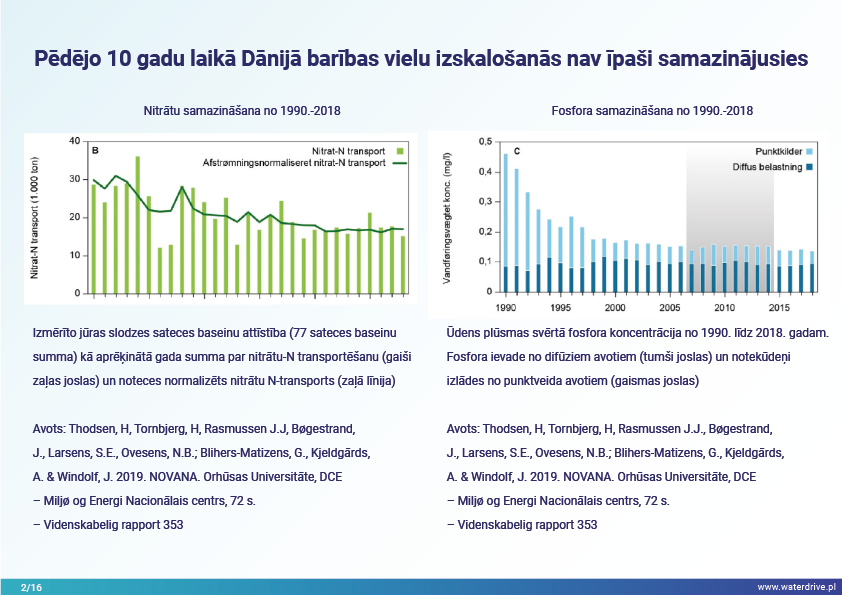 Barības vielu notece pēdējo 10 gadu laikā Dānijā nav būtiski samazinājusies, tāpēc ieguldījumi mākslīgo mitrāju apbūvē ir izvirzīti par prioritāti kā riska mazināšanas pasākumu. Šim nolūkam ir izveidotas sateces baseina amatpersonas, kuras ir izveidotas no lauksaimniecības konsultantiem, kuriem lauksaimnieki uzticas un kuri ir aprīkoti ar datiem un instrumentiem, lai plānotu izveidotos mitrājus optimālā vietā sateces baseinā.