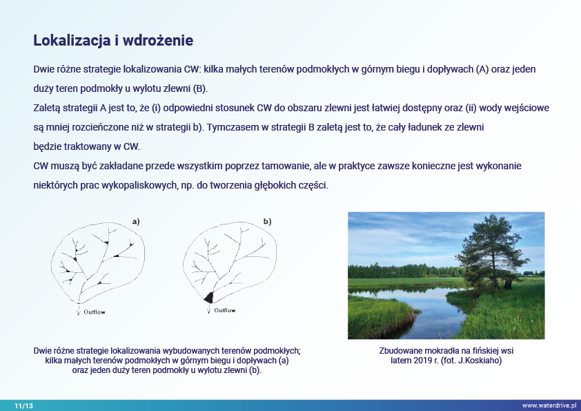 Ostatnia grupa działań zaprezentowana w the Waterdrive Catalogue of Measures (https://www.slu.se/waterdrive) to działania rolno-środowiskowe związane bezpośrednio z ekosystemami wodnymi: dwudzielne koryta i sztuczne mokradła. Przebudowa kanałów lub uregulowanych cieków polegająca na wyznaczeniu głównego kanału oraz taras zalewowych służy ochronie przed powodzią i suszą, samooczyszczaniu rzek i zwiększeniu bioróżnorodności.